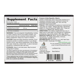 Experience the strength of nature’s most potent mineral complex with this 3-pack of Altai Shilajit Resin Dry Drops w Burdock Root Herbal extract by Siberian Green. Sourced directly from Golden Mountains of Altai, which is one of the UNESCO-protected sites, these pure Altai shilajit tablets are extracted and purified using proprietary methods to preserve maximum fulvic acid and trace minerals—essential for energy, stamina, and wellness.